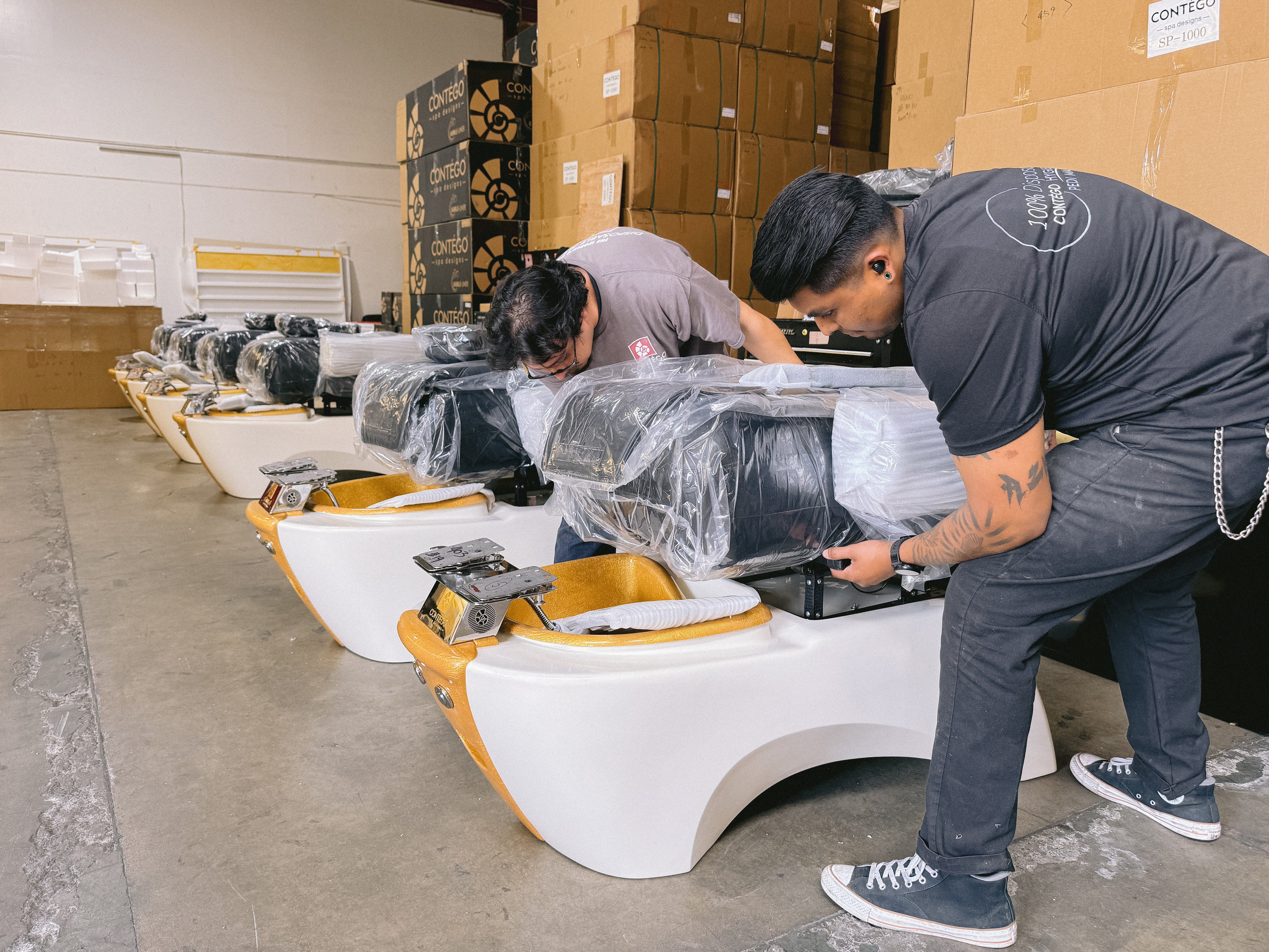 Based in Garden Grove, California, CONTÉGO designs and manufactures its spa chairs in its own factory, maintaining full control over every component—from the smallest screw to the finished chair. This allows us to deliver exceptional build quality, consistency, and long-term reliability.